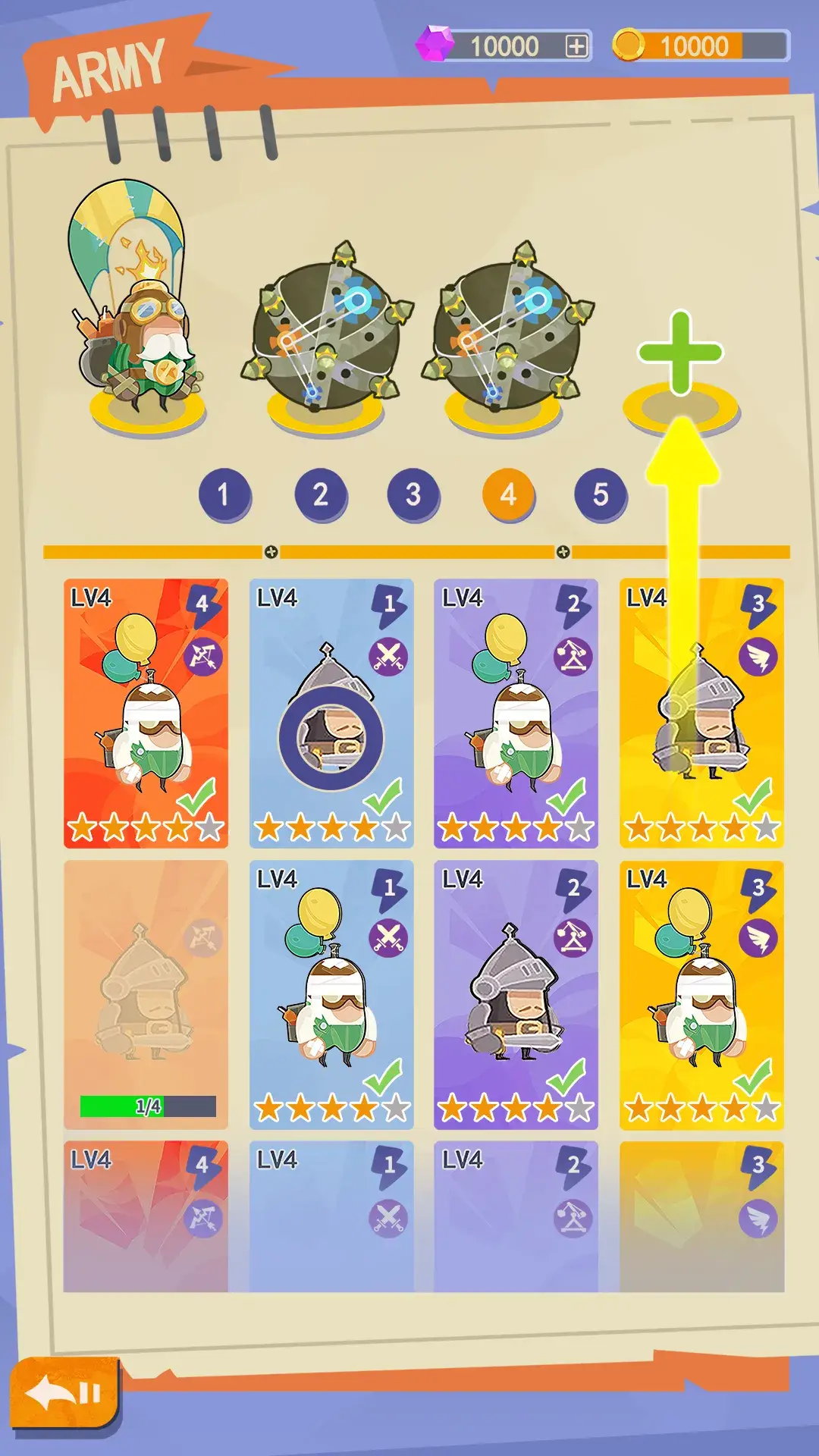 你是一位拥有移动城堡战车的国王,通过二合随机合成更强大的士兵,利用好你的法术,组建好你的军团,掠夺玩家资源,同时你需要精心布置自己的防御阵型。