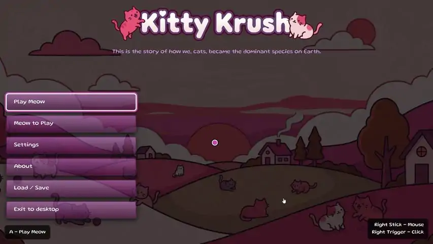 Kitty Krush is a cozy, cat-themed story about a hive mind cat civilization that enslaves humanity. Wrapped up in a simplified deck-builder, unlock chapters with each round of play. Based on a true story. *It will take a few runs to unlock the entire story. You are meant to fail on the first attempts and come back