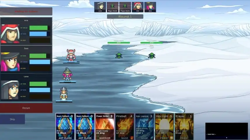 Golgothian is a deckbuilding roguelike for 1-2 players. Assemble a party of three from multiple classes and fight your way through three elemental mountains to reach the Skull of