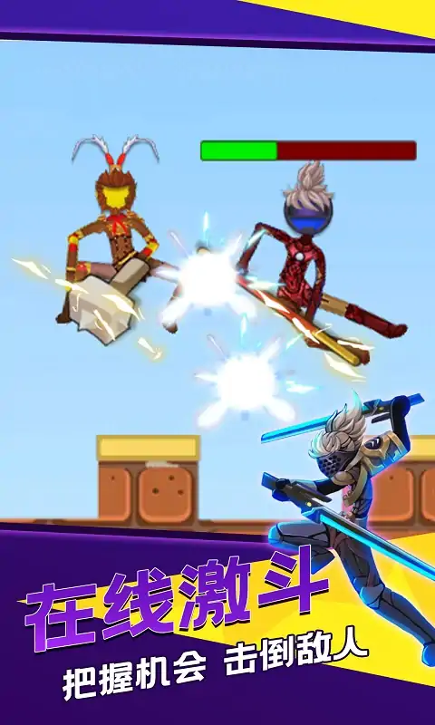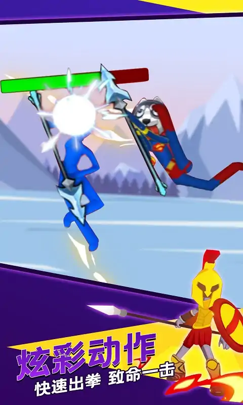 《激战火柴人》是一款超好玩的火柴人动作格斗游戏。好斗的火柴人们一定要通过一场比武来确定谁是最强王者。游戏操作非常简单,通过虚拟摇杆控制火柴人的移动,通过灵活的移动争取有利的攻击位置将敌人击败。 游戏特点 1、激情进行挑战闯关,愉快进行收集一些特殊道具物品,在关键时候使用道具,让火柴人角色轻松过关。 2、丰富类型的关卡,每个关卡都是巧妙设计而成,给玩家多样挑战体验的同时,也给玩家许多的乐趣。 3、精彩的无尽模式,玩家需要让自己火柴人角色进行擂台搏击战胜所有的对手,就是格斗竞技的胜利者。 -多种道具助攻,操作简单易上手,挑战你的战斗力! -拳拳到肉,真实暴击体验,超爽超解压! -卡通贱萌的风格适用于各种富有幽默感和战斗力爆表的玩家。 -丰富的武器系统,解锁更多的武器帮助你的战斗。 -超多皮肤任君选择,蒙面超人,钢铁人,蜘蛛人,剑豪,齐天大圣等应有尽有。