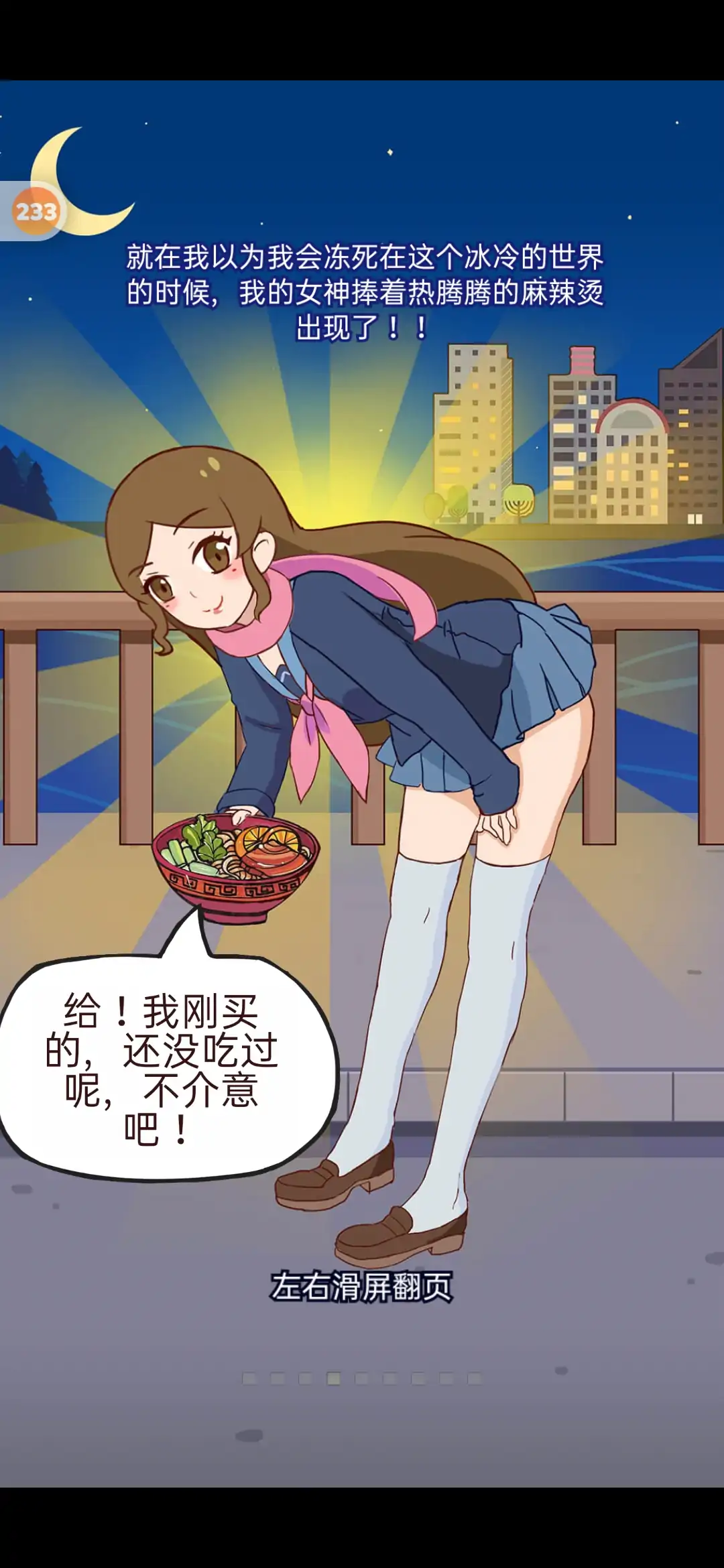 【游戏介绍】 某一天,当你独自踏上异乡奋斗时, 残酷的现实生活给了你沉重的一击, 正当那时,一位从漫画中走出来的美少女向你伸出了援手~ 从此你便暗下决心,势必要努力赚钱追求这位心目中的女神! 然而追求女神到底是一种怎样的体验呢? 送花送包她都不要,投喂卖惨她Get不到. 说好的欲擒故纵,投其所好,难道都是骗人的吗? 看来只好使出失传已久的“舔狗三十六计”了! — 我相信,只要舔狗手段一到位,绝对没有撩不动的妹! 【游戏特色】 1、过关斩将 ,打工赚钱 为了博得女神欢心,努力赚钱买东西讨好她自然是少不了的,赶紧骑上心爱的小摩托,直面逆境,想尽一切办法排除艰险送出外卖吧! 2、脑洞大开 ,无限舔狗 如何能迅速掌握女神的心呢,光靠投喂、搭讪、嘘寒问暖这些是远远不够的。女神的心思,你永远也猜不透,所以请打开你神奇的脑洞,解放习惯性思维,使出千方百计让心动女神望向你吧~ 3、房屋装修 屌丝逆袭 俗话说的好,送吃送喝不如彼此拥有一套房子实在!为了给女神一个温馨幸福的家庭,从此刻开始,你要学会散发你无处安放的魅力,从屌丝逆袭至高富帅,从空档小屋至琳琅满目,从单身一人至两情相悦.
