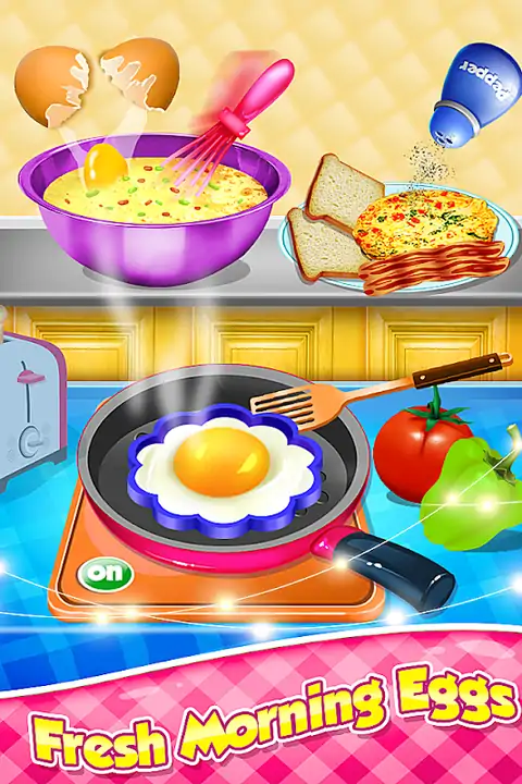 早上好,孩子们!最好以营养丰富的健康早餐开始新的一天。早晨,请绑好围裙,因为它的早餐时间充足。初级游戏工作室推出了一款新的儿童游戏。学习在厨房里煮早餐。制作美味令人垂涎的平底锅蛋糕,煎蛋卷,香肠培根或煮早餐香肠和煮鸡蛋,在烤面包机中制作美味的冰沙和吐司面包,以搭配果酱或黄油食用。玩法选择自己喜欢的早间小食做饭收集鸡蛋,蔬菜,黄油,培根,牛奶和水果等所有食材以制成健康的早餐组合。按照游戏准则进行完美烹饪。为您提供完美早餐制作者