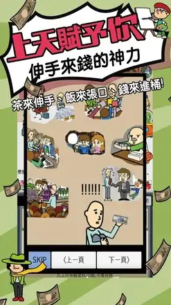史上超賺錢全民爆笑掛機懶人模擬經營放置角色扮演遊戲!史上第一款,指引你前往懶人不工作,成為億萬大富翁的世界史上第一款,直擊上班白領的痛,拒絕22K的街機冒險經營養成類小遊戲史上第一款,洩漏上班工作為何不能成為大富翁,全民都在玩的經典掛機角色扮演模擬遊戲史上第一款,甚麼都不用幹,就能買下全世界、邁向人生巔峰的大富翁小遊戲史上第一款,純粹的原創日漫風,超簡單、爆笑、坑爹、囧到爆的模擬放置的單機故事小遊戲開始工作後,你在享受人生,還是忍受人生呢?囧~你讓自己好好休息渡個假了嗎? 囧~如果天上掉下錢,有懶人致富秘密擺在你面前,你有勇氣跨出這一步嗎(指)!- 伸手要錢:我點、我戳、不可思議的是錢就如此落入你的鐵桶內,這是上天的旨意,也是你的宿命!- 尋找人才:雇傭打工仔養成乞討軍團掛機賺錢,儘量多雇打工仔,掛機賺更多錢!- 資產暴增:模擬購買多種奢侈資產,放置經營資產賺取差額。- 人生百態:豐富的模擬角色扮演、養成與爆笑劇情,告訴你各行各業上班工作都不簡單,快去收集所有的故事及爆笑卡片吧!- 買買買買:超簡單的懶人模擬經營賺錢掛機遊戲,不用思考如何賺大錢,只需擔心:今天我要買甚麼? 0成本!0壓力!白手起家韓流原創模擬乞討經營放置角色扮演,成為絕世大富翁的秘密就在這裡!上天賜與你伸手來錢的能力,千萬不要白白浪費了!※注意!!!!這是掛機養成遊戲,刪除後所有錢可能零,刪除遊戲前請務必確認※千萬不要嘗試破解本單機遊戲※千萬不要嘗試破解本單機遊戲 (重要的事情再說一次)※千萬不要點廣告,就算覺得很爆笑,也不要隨便點擊,因為這樣我們就會賺錢,就會做更多教壞囝仔大小的單機遊戲※如果玩了此模擬經營遊戲並淪落街頭乞討,製作團隊將負責給予早餐一份,以資鼓勵!