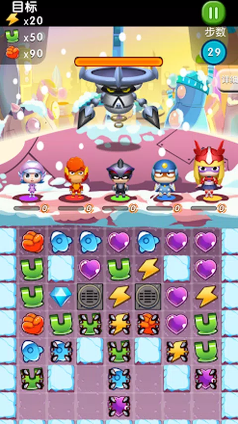 在神奇的星球上,开心超人、甜心超人、花心超人、粗心超人和小心超人五个可爱的小超人,与妄图侵略星球的“大大怪将军”和“小小怪下士”奋勇斗争,开心冒险的故事。我们邀请您成为故事中的英雄!加入这款无广告且免费的连线消除RPG益智休闲游戏,解开上百个趣味谜题,收集二十可爱的超人英雄,一路过关打败坏人。一拳超人打死坏蛋。游戏特色:1、关卡容易,简单上手,想玩好却需要动动脑筋。2、收集可爱超人,组建队伍,升级英雄,发现他们的特殊能力