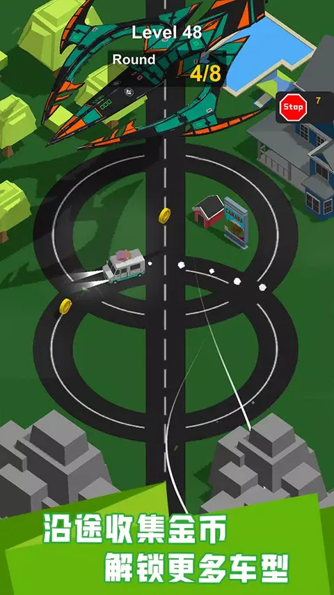 这是一个简单的汽车驾驶游戏。我们将控制汽车并在环形道路上行驶,避免障碍物并保持安全。无论您是驾驶救护车运送患者,驾驶工程车来建造城市,还是驾驶SUV来享受假期。无论在什么情况下,我们都必须确保安全驾驶。在此游戏中,请勿追尾其他车辆或动物。怎么玩点按左侧屏幕以减慢速度点按右侧屏幕以加快速度在路上收集硬币避免使用其他汽车或动物以确保安全提示撞到其他汽车或动物会暗恋并失败您可以选择60多种不同的汽车升级您的汽车将使加速和制动性能更好在这个游戏中,超过数千个关卡和60多种不同的汽车。只要您能通过关卡就可以生存。收集金币以解锁更多的汽车,打开拼图盒以获得升级汽车的拼图筹码。这是最容易上瘾,最简单和最小的游戏!时间杀手的冠军