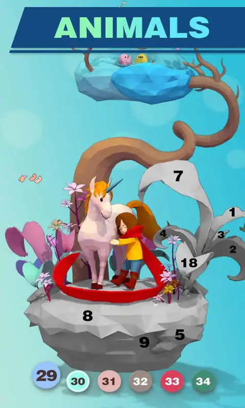 《涂色世界3D Paint World 3D》是一款独特的3D涂色游戏。在传统的涂色玩法基础之上,将维度实现了从平面到立体的升华。游戏将美丽的平面艺术画带到了立体世界,这些由精美模型构成的各类场景,就像是掌中的艺术品。你能够在享受为这些艺术品上色的同时,得到压力的缓解并感到身心的放松。