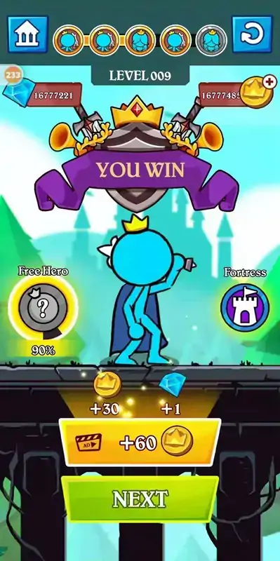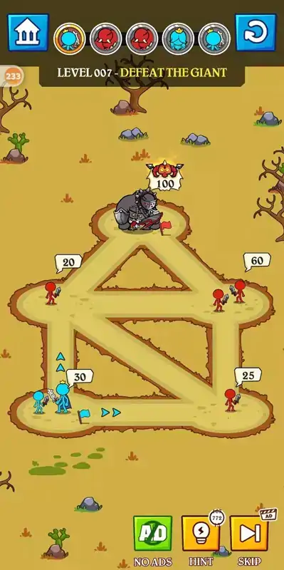 《火柴人冲击Stick Clash》是一款十分有趣的休闲游戏。游戏开始时玩家将会有一支由士兵组成的小队,合理运用小队的战斗力去和敌人战斗。将敌人拿下之后战斗力也会相应提升,利用这个技巧打败地图中的所有敌人然后解救公主吧!