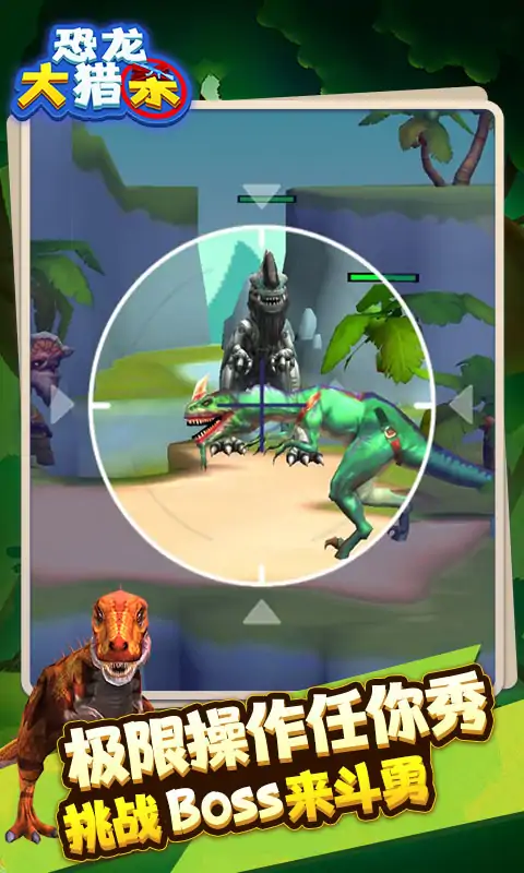 恐龙猎人王是一款3D第一人称射击游戏,游戏内多达数十种各具特色的恐龙,玩家不仅可以击杀恐龙,还能抓捕它们,喂养恐龙当你的宠物!充满挑战的关卡,凶神恶煞的恐龙像你袭来,开局只有一把枪的你,能接受挑战吗?