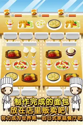容易让人沉迷于日式家庭餐厅的游戏!!游戏方法超簡単!在农园里收获食材后制作出美味的料理吧!完成的料理后放到店里贩卖,努力成为这个日本第一的家庭餐厅吧〜!【游戏方法】1.在农园收获制作面包的食材(如小麦,鸡蛋或是虾)2.收获到丰富的食材后,烹调后开发新的食谱3.制作各式各样的料理放在店里贩卖4.贩卖完后的收益用来扩大农园和店铺有可能只要一次投入进去就无法自拔哦。。。超级简单的任何人都可愉快地消消闲解闷的游戏。全部都收集完成后也可挑战一下其他的达人系列!比其他人都快的完成各种达人的挑战吧〜!