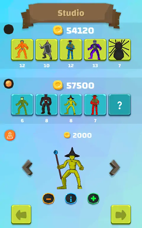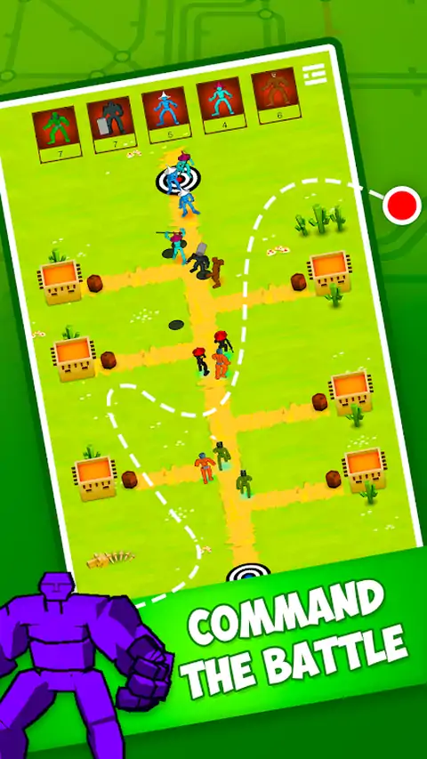 1了解你的敌人,他们的强弱。检查战场3。明智地选择你的战士。开始一场史诗般的魔法、钢铁和战术。你不需要消灭你所有的敌人来赢得胜利。把你的部队送到敌人的基地就够了。但请记住,只有以最少的损失赢得这场战斗,才能使你成为真正的战术主人。你游戏中有很多人,22个单位总计:1。近战战士⚔️:•3个轻量级近战队员,部署速度非常快?♂️ •4名重量级混战队员?2远程战士?:•2个带枪? •1枚手榴弹攻击? •1带有致命气体攻击3。魔法战士?:•2与冰冻袭击? :效果根据战士的不同而变化。1有漩涡攻击? •1个法师转换敌军:效果因战士而异•1个有电攻击⚡ :效果因战争而异4。特殊战士:•1个放置地雷•1个每25秒呼叫一次空袭✈️ •1个带爆炸带的家伙•1名医疗兵:部署后,他每3秒为你的所有单位增加30点生命?5怪物战士:•1只蜘蛛?️ •1个骨架?游戏中实际上有三种模式:战役模式:系列你可以选择敌军和战场。你需要选择合适的战士并赢得战斗。那里在这种模式下有一些限制,以避免游戏变得太过很简单。不过,你有工作室模式,你可以做任何你想做的事想要。这些限制条件是:1。每个单位都有一个成本,在战役模式下你不能超过你的敌人单位的总成本。2每个单位只能花费4000金币:这是为了避免你只使用一个强大的单位来赢得战斗3。你必须在上面描述的22个单元中至少选择3个。4你不可能有完全相同的敌人勇士。工作室模式:你选择你的敌人战士,战场和你自己的战士们。在那里在工作室模式下没有限制,但是战斗不会持续太久