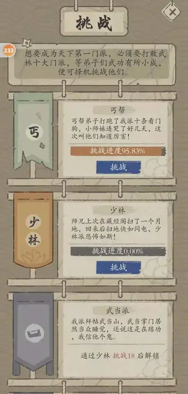 最强门派是一款以武侠为主题的排行游戏,游戏主旨是门派管理,招收弟子,解锁武功秘籍,培养弟子,对抗挑战,登上武林榜,轻松成为武林第一门派。游戏介绍门派经营手游。游戏画面采用最经典传统武侠风格,画面细腻真实,美轮美奂。门派经营玩法丰富,玩家可开山立派,成为武林掌门人执掌门派!游戏特色轻松点击即可玩转游戏丰富的游戏内容,各种事件以及主线剧情等你来体验不一样的文字经营游戏,你能成为伟大的掌门吗游戏玩法自创门派功法,并设定功法修炼方向。根据弟子的性格与能力,合理安排门派内各个职位。游戏中门派弟子玩家可以任意差遣,让他们建设门派,将更快速的发展!修炼更多的门派功法绝学,掌握通天彻地只之能,一统武林不再是一个传说!门派之间关系时刻变化,和睦友善还是相互斗争,都取决于掌门制定的对外策略。招募万千侠客,自由升级,将他培养为江湖之上的豪侠,在群雄逐鹿之中为自己争锋天下!门派之内,还可以挑战BOSS收集物资,让自己的门派逐步成长,最终成为武林之内的超级门派。内功心法任意修炼,突破进阶成就武途。武林里,群雄并起;江湖上,快意恩仇。即可自由江湖冒险,又可修炼神功心法,还可以执掌门派,成就一方巨擎!