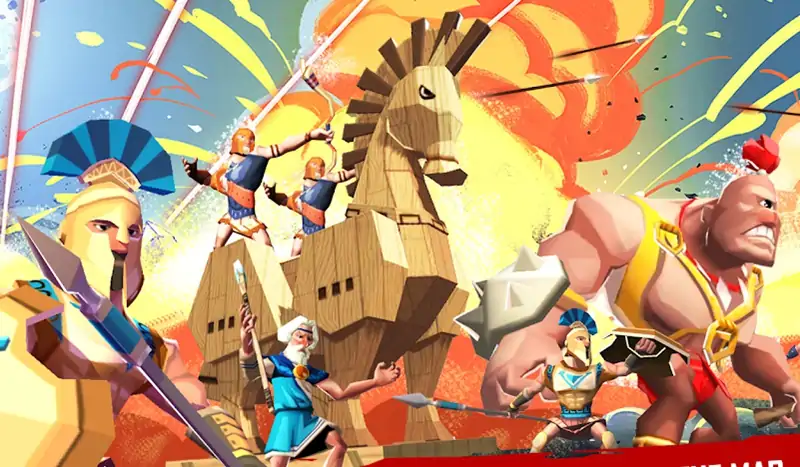 在游戏中,你将指挥道路上的希腊军队征服特洛伊并将美丽的女王海伦带回来。 每个领地之后,你将有更多类型的部队。此外,你可以使用金币来装备物品供奉神,以增加你的力量。 在每一场战役,你必须平衡的食物,训练军队,使用特洛伊木马的堡垒保卫或使用魔法书摧毁敌人的塔。 英雄: - 孙子:在10秒内创建一个漩涡,击倒敌人 - 赫尔曼:尖峰陷阱处理大量伤害并减速敌人在5秒内 - 圣女贞德:还原的所有单位的血液100% - 埃尔熙:提高军队的士气。 1次命中结束了对手的概率