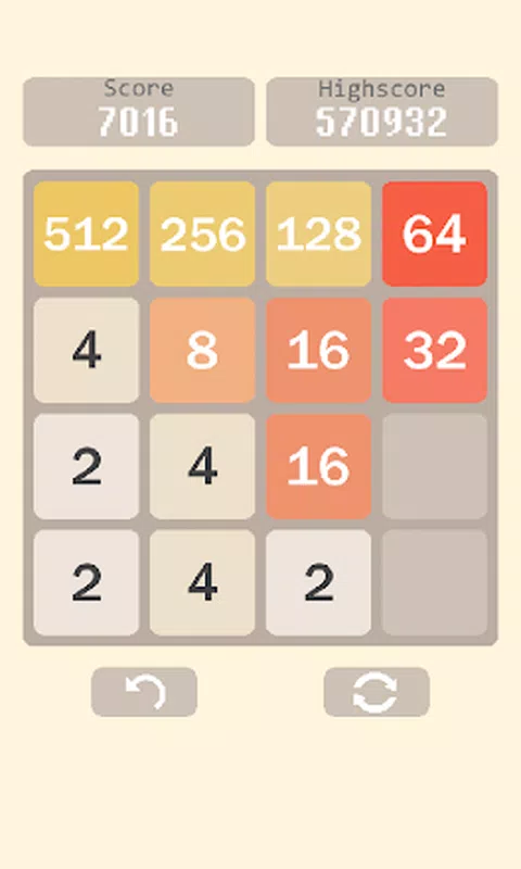游戏目的:获得一个编号为2048的图块,可以使用手势在四个方向中的任意一个方向上移动图块,如果两个相邻的具有相同编号的图块在同一方向上移动,它们将“合并”,并且出现一个新的图块的两倍每次运动后,将随机添加一个新的图块:2或4。注意:收集2048图块后,您可以继续游戏并尝试尽可能多地得分