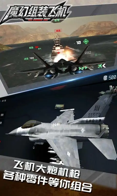 驾驶你的战机从航空母舰中飞出,以超级速度在空中翱翔,穿行在水天之间。浓云密布,黄昏时光,在地平线上的完美飞行。或摧毁迎面的战机,或瞄准海平面上的战舰,或自由的放松自己,本款游戏给你前所未有的真实体验。 -解锁你的专属飞机,F14,F18,皇家空军31,X1乌鸦,等等,多种战机等你来体验; -装备战机导弹,LAU-72,C-25,R-73,等等,给你最棒的轰炸体验; -替换上不同的大炮,加特林机炮12,火神,暴雨,还有众多等你来换,体验最真实的机枪射击; -最后也别忘了给你的战机染色,迷彩绿,灰白格,彩蓝色,多种颜色,总有一个你会喜欢; 组装上你的超级战机,去体验这海天之际的飞行战斗体验吧!