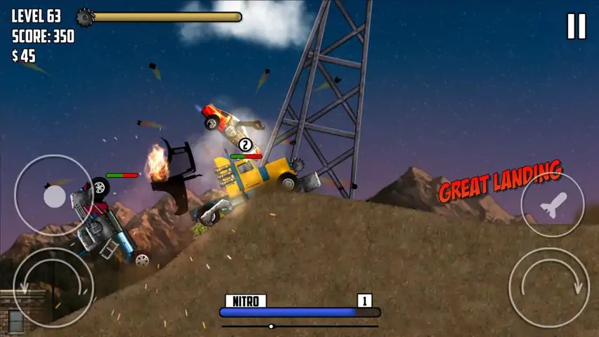 准备在这个激动人心的特技驾驶挑战另一个死亡追逐。选择与第一定制你的车。你的目标是当你试图拿出你的对手比赛有一些非常大的跳跃颠簸的路面。为了获得硝基为您收集硬币和星星在比赛中升级你的车,你必须执行特技。你必须不惜一切代价拉拢其他车手的胜利,即使这意味着摧毁他们的汽车。多的乐趣!游戏包含关卡编辑器!