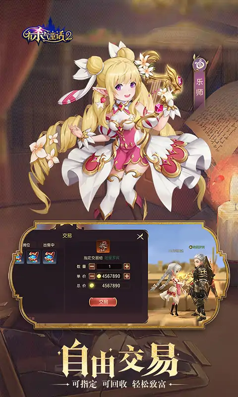 《有杀气童话2》是网易游戏推出的全新战斗童话MMO手游。沿袭前作奇幻的童话背景,有着颠覆传统的剧情,在看似美好实则危机四伏的世界,冒险者们将开启一场炫丽的战斗之旅。在奥兹大陆,奇遇有温度的童话伙伴!组队虐怪,百人族战,打本爆装,交易致富!还可以多重转职,自由加点,打造专属技能流派!更有10000平私人城堡,养花钓鱼,享受童话休闲生活 1.【家族争霸 百人乱斗】 百人群架,欢乐大乱斗!趣味资源争夺,主副双战场,家族荣耀缺你不行! 2.【自由转职,打破界限】 五种职业自由选择,多重转职,感受不同的乐趣!技能自由加点,定制专属流派! 3.【组队开荒,多元爆装】 好友组队挑战童话大BOSS,海量副本随机爆珍品!装备掉落绝不重样!更有幸运值加持!成为欧皇不是梦! 4.【自由交易,轻松致富】 装备可回收!闲置物品摆摊卖钱!更有一对一的指定交易,轻轻松松致富! 5.【童话伙伴,保驾护航】 奇遇有温度的童话伙伴!为你助战打本,陪你钓鱼挖矿,在伙伴好感度积累后,解锁更多番外故事! 6.【10000平奢华城堡】 登录就送,私人豪华城堡+专属女仆!DIY你的会客厅,布局你的庄园, 养花钓鱼,享乐童话般生活