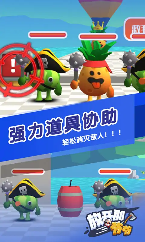玩家在不伤害到爷爷的情况下击败所有劫匪即可营救成功。成功营救爷爷即可获得胜利。营救的时候需要注意路上出现的道具,合理使用道具可以使营救更顺利。