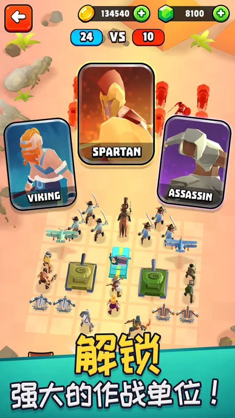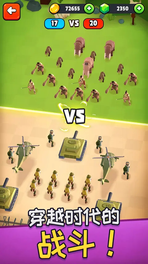 这是有史以来最大的自动战斗模拟器!招募历史上许多不同时代的战士和战士加入您的军队,包括穴居人、抵抗战士、罗马皇帝、直升机、黑帮等等,然后再将他们派往战场。每一场战斗都让您有机会赢得金牌和历史性的荣耀! 每个战士都以不同的方式战斗,并拥有自己独特的能力 - 当您升级、定制和组建军队以进行跨时代的具有挑战性的战斗时,没有一场战斗是完全相同的! - 深度且令人上瘾的进度系统 - 清晰而简约的艺术风格 - 完全动画角色 - 具有数千个独特关卡的广阔战役 - 招募大量战士 - 每个人都有不同的能力 - 挑战模式,您每天都可以获得奖励
