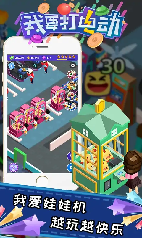 《我要打电动》是一款模拟经营游戏,玩家在游戏中将扮演电玩城的经营者将一个经营不善的电玩城逐渐升级为一个超豪华电玩城,在后期还可以在各种不一样的场景开分店,举行电玩赛事活动。 做出重要决策,建立最棒的电玩城。 游戏特色 设施更新,千种任选 增开分店,扩大经营 简单有趣,轻松愉快 电玩娱乐,真实模拟 操作简单,疯狂挂机 碎片时间,轻松解压