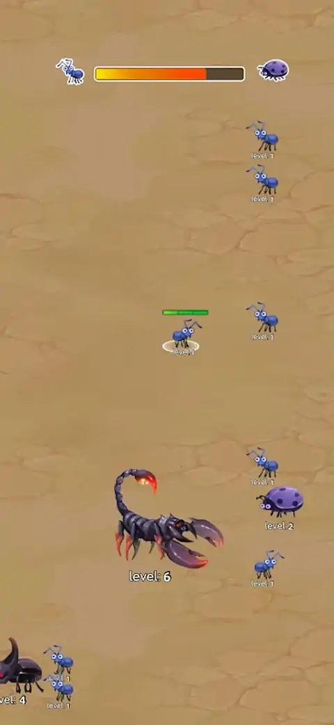 昆虫进化是一款通过关卡的休闲手游;你是一只小蚂蚁,迷失在沙漠中,回家的路很远。您必须通过所有级别才能找到您的家人,但这并不容易。 在路上你需要吃比你小的昆虫才能长大,但同时不要被吃掉,小心比你大的昆虫和更强壮的生物。