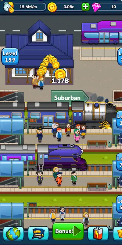 你化身变成都市最大火车站老板 如何赚更多的钱,就靠你了! 经营火车站可比你想象的赚的多哦! 扩建、招募、收购!变成富豪只需要用手点一点! 和你的小伙伴比拼谁的火车站更受欢迎吧~~!