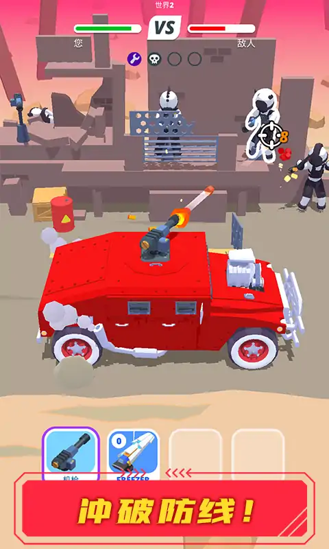 在废土骑士中,当您并排赛跑时,与敌人并肩作战。只需按屏幕上的武器即可开枪并拖动手指瞄准。吹散敌人的车辆,并消灭敌人的射手,使他们失控旋转并爆炸! 请小心避免敌人开火,并确保在其他车辆撞向您之前躲闪。如果您承受太大的伤害,您的汽车将成为爆破的那一辆!您的射击和驾驶技能越好,您将获得更多的游戏金钱! 游戏特色 这款动感十足的汽车射击游戏结合了易于学习的控件和具有挑战性的目标。 击落各种类型的车辆中的敌人,从摩托车和运动型双门轿跑车到警车和装甲卡车。要获得额外的现金,请在以慢动作驾驶建筑物时消灭敌人!机架杀人,以完成水平,并获得额外的分数,以获得良好的射击! 随着您的前进,您将穿越地形各异的世界末日! 在每个级别中选择一个新的助推器以发挥自己的优势。激光和等离子枪,闪电,装甲,金钱,额外的健康-所有这些以及更多内容供您使用! 完成关卡和任务以打开箱子并获得奖励,您可以使用它们来修改车辆。 在汽车修理厂进站维修以升级您的乘车路线。解锁数十辆汽车,包括复古和稀有车型! 使用70多个车轮,保险杠,排气管和发动机来定制您自己的战车!