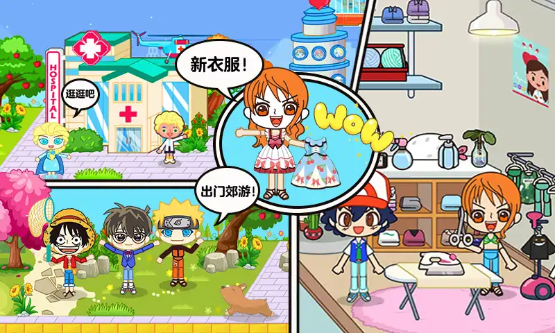 动漫大明星们来到了我们的小镇里, 清晨的小镇开始忙碌起来了!街道上已是车水马龙! 在我们的客人们欣赏完镇子的风光之后,他们进入到餐馆里用餐,但是在用完午餐之后,变故发生了!我们的鸣人居然吃坏了肚子! 哦,这可真是太糟糕了! 柯南为首的医疗专家立刻为鸣人开展了紧急会诊,结果发现鸣人的病情十分棘手,原来是他肚子里的九尾食物中毒进而影响到了鸣人的健康! 现有的药物无法对九尾起效,我们该怎么办? 但是在大家的不懈努力下,我们终于研发出了新型药物,鸣人终于有救了! 故事的最后鸣人终于在大家的祝福中康复了! 这可真是个扯淡的故事,哈哈! 那么你能在游戏中让动漫主角们发生什么样的精彩故事呢!快来试一试吧!
