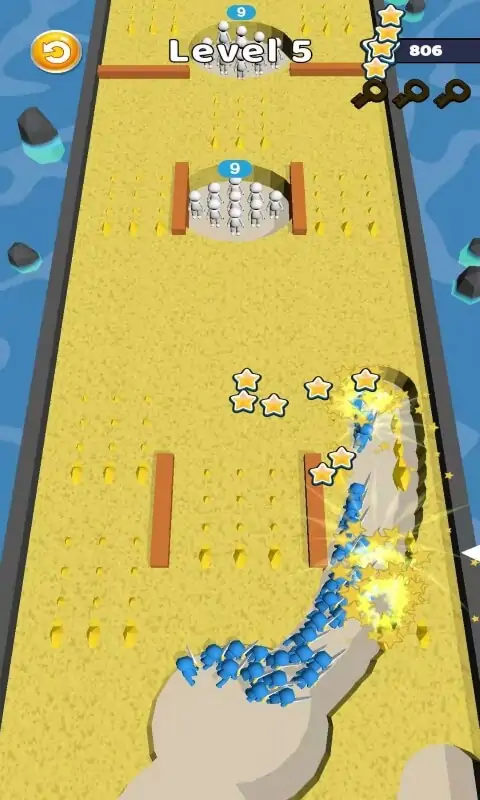 带领你的军队走向胜利 清除障碍,击杀敌人,收集星星,升级武器,最后击败boss,接管宫殿!