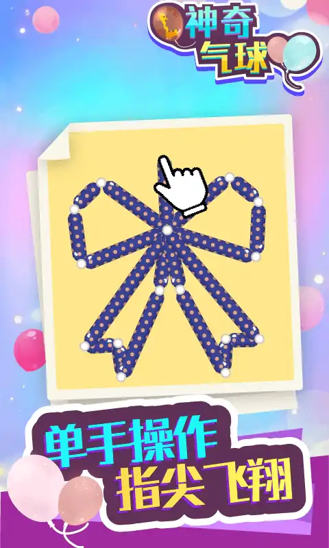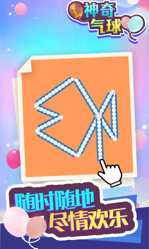 《神奇气球》是一款休闲解压游戏。来一场气球派对!快来帮助小熊制作花式气球,为大家的生日派对、舞会做 准备吧!控制气球的方向,按照提示将气球拼接出各种美丽的图案。 五颜六色的火箭、帆船、小汽车,带给你满满的成就感。但是注意气球需要规划好制作的路线,重叠会让气球爆 炸。同一个图案,可能会有无数种制作方法,等你来探索!此外,还有限时关卡,挑战你的反应和手速! 核心玩法: 划动屏幕控制气球的路线按照提示将气球拼接成指定图案即可过关,另外还可以解锁各种皮肤满足收集。