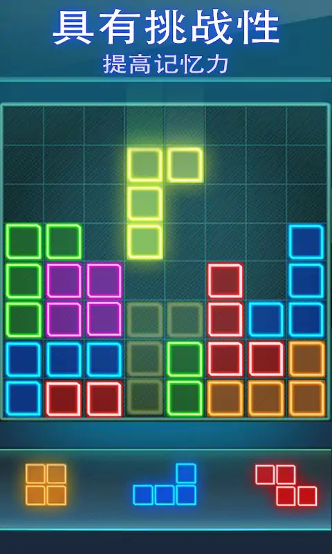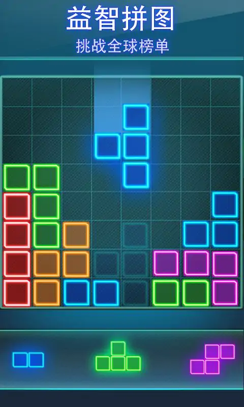 享受荧光拼图的乐趣。用这款霓虹拼图游戏训练你的益智游戏技巧。适合所有年龄段的朋友,只要你开始玩,就一定会爱不释手。这是训练你的大脑,保持思维敏捷的最有趣的方式!你可以在任何时间,任何地点,创造一个辉煌的战绩。如果你还在为如何开发孩子的智力而烦恼?那么这款拼图游戏一定可以帮到你。玩法说明- 拖动方块填充网格。 - 方块不能旋转。 - 尝试用方块将行或列放满,然后方块会消失。 - 益智游戏,发人深省,锻炼您的大脑。 - 没有时间限制,享受无限乐趣。特点- 简单易操作,拖动方块进行填充。 - 明亮的色彩,舒缓放松的音效。 - 多种方块的组合和多彩的图形。 - 家庭益智游戏,与家人一起享受游戏。 - 支持排行榜,打破世界榜单,挑战脑力极限。广告很烦人?没问题!游戏中去广告功能,或参与评价给予我们反馈。现在下载并挑战这个简单但并不容易的益智游戏,享受你的快乐时光!