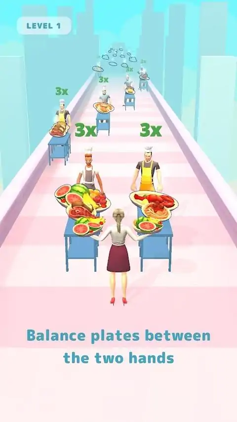 穿过一家餐馆。从厨师那里收集盘子。记住平衡是关键
