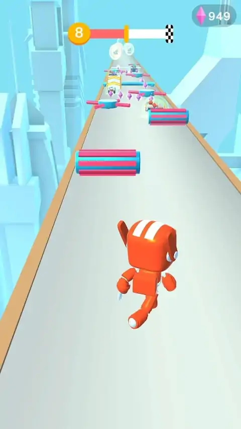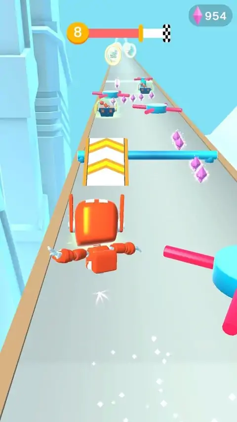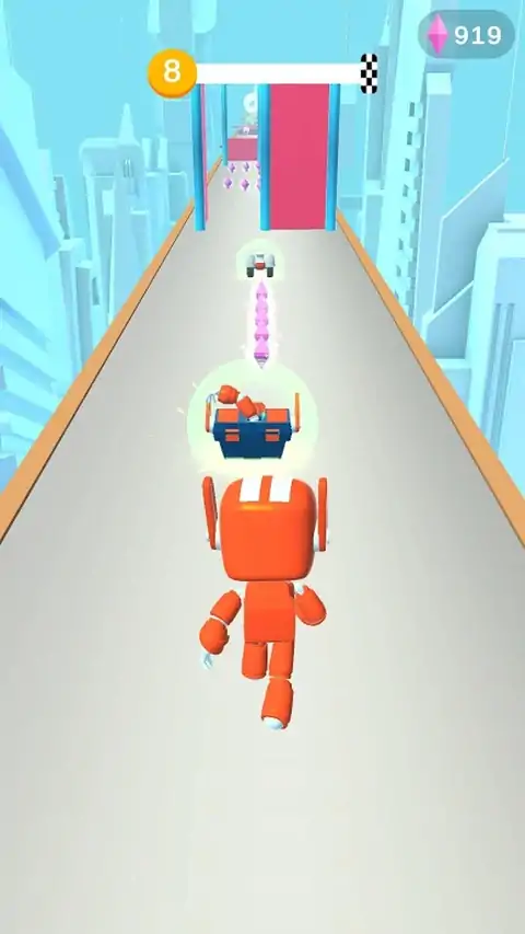 点击屏幕左或右侧滑动以控制运行机器人。 在途中收集钻石,并在不失去机器人的身体部位的情况下留出障碍物!如果你这样做,找一个恢复丢失的部分的宝箱。 完成水平并有一个光明的未来