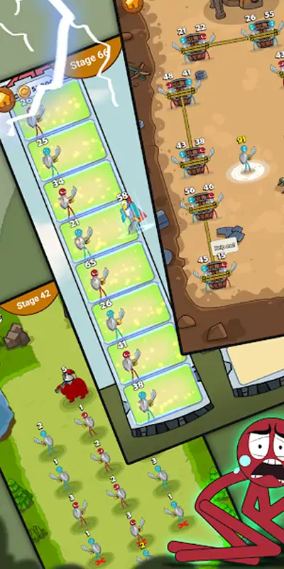 十分简单的规则!在“火柴人战争2021”中,您只需要计算敌人的数量,用手指对角地拖动火柴人或直接与他们战斗即可,使火柴人上的敌人数量大于BOSS数量。 在国度或战争中要小心BOSS的同盟,尤其是火柴人的人数不能等于老板的人数。