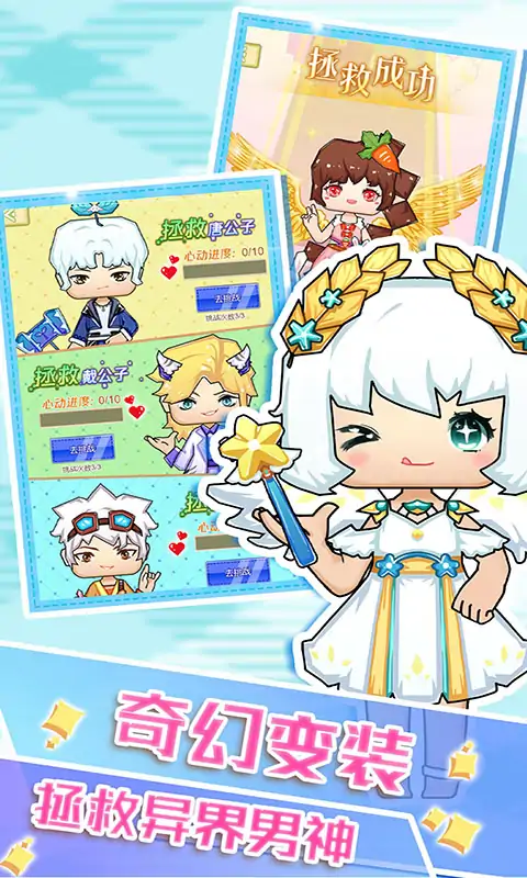 [你心目中的小公主和小王子都是什么形象?] 公主裙,王子装,小萌宝形象多变,你想怎么配都可以 [提问:乖巧萌妹怎么穿?] 随机主题,看看你是否能搭配出适合的装扮,快来试试看 [拯救小小甜心,居然可以这么做] 用你神奇的小脑袋,搭配出神奇的装扮,拯救奇迹星球 [甜心公主遇到了小麻烦,快来帮帮她] 通过线索,找到正确的选项,你选择对了么?