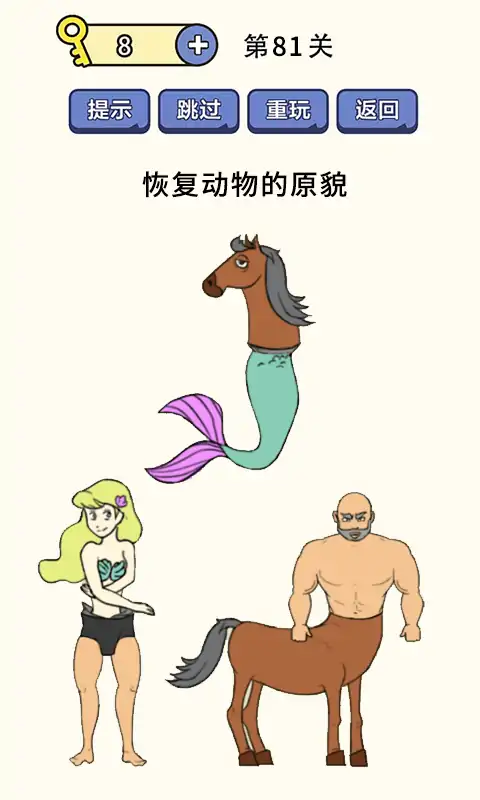 游戏需要你用非常规思维思考问题,问题的答案往往出乎你意料的搞笑扎心,有点类似脑筋急转弯游戏,但是比脑筋急转弯的表现形式更无厘头。