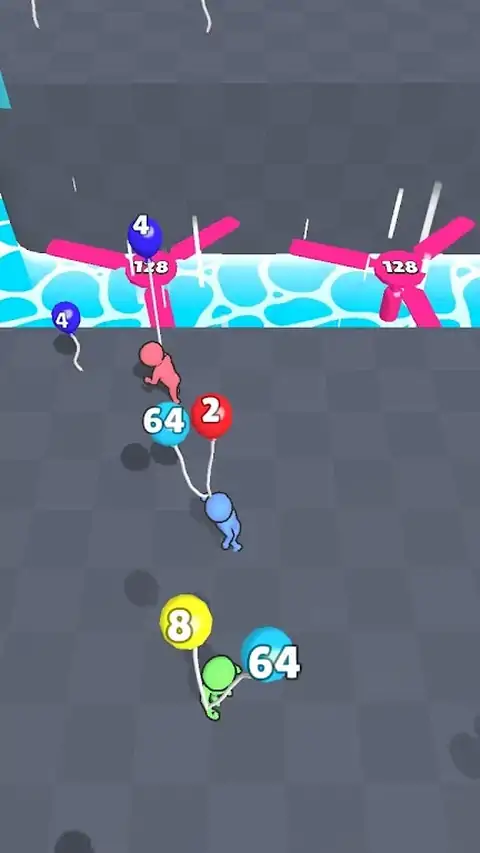 收集充气气球。充气气球按照2048规则连接。收集必要的数字飞越风扇! 不要让别人收集太多气球,以免被超越!