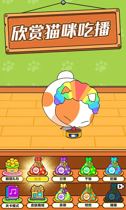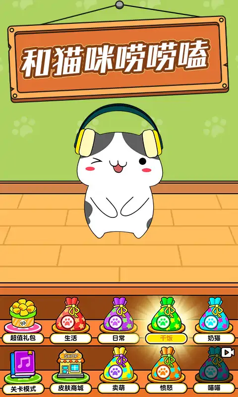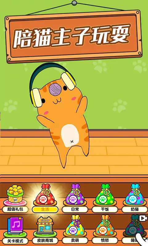 游戏的主角是一只猫,可以不断地学习并获得更多的语音包 每个语音包中都包含4种不同的叫声,不同的猫咪叫声代表着猫咪目前的不同状态。 你还可以在闲暇之余用逗猫棒逗它,也可以喂它猫罐头。 游戏中还有闯关模式,按照顺序点击相应的按键会练成一首歌触发你的猫咪为你带来幽默的舞蹈。