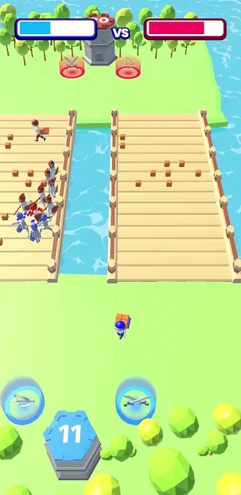 收集立方体并将其带到指定区域。你干掉的战士必须与敌人的战士作战并占领敌人的塔楼