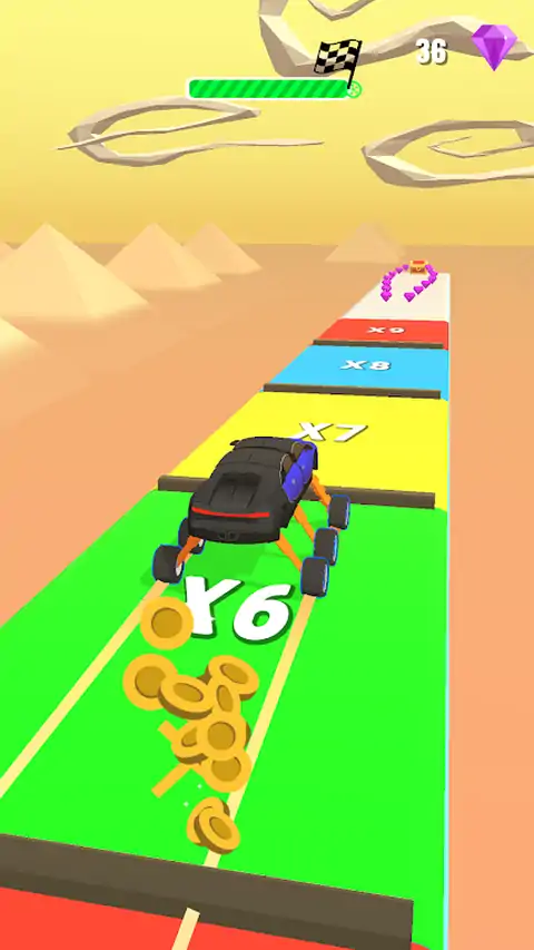 避开障碍物,尽可能多地收集车轮,成为终点线的第一个车轮