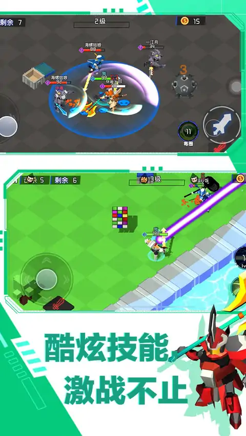 迷你机甲大乱斗是乱斗IO中度小游戏 【游戏亮点】目前没有对标游戏,是全平台第一个将机甲题材做成乱斗玩法的小游戏。游戏美术投入大,有精致的3D机甲模型,卡通迷你机甲,美术画风结合度高,迎合用户口味。更有多种武器与技能,以及多样的装备,转盘,宝箱系统,更随2种模式,能让用户沉入体验! 【游戏操作】操作简单,滚轴控制方向,点击释放技能与普通攻击 【游戏玩法】滚轴控制方向,施放技能,击杀敌方即可拿第一!