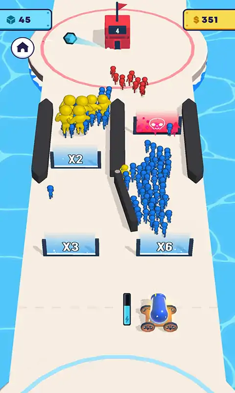 超级英雄是一款非常棒的休闲益智游戏,在这款游戏中玩家们需要运用自己的智慧和点击速度,在尽可能短的时间内控制大炮喷射最多的蓝色小人,尽全力将大炮喷射到增加倍数更多的门上,以增加我方人群并占领所有基地!除了增加人数的蓝色大门,还有减少人数红色大门,需要和他们斗智斗勇不让红色大门减少我方人数,赶快下载体验吧。