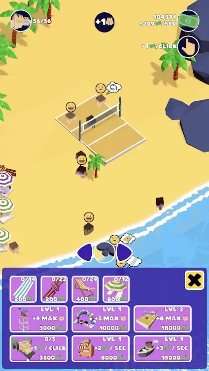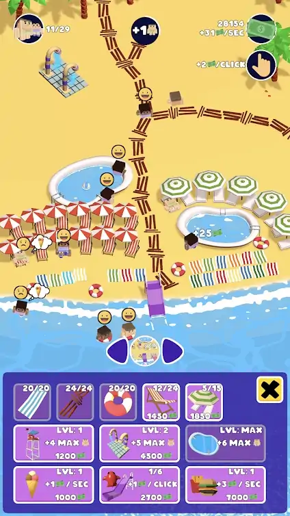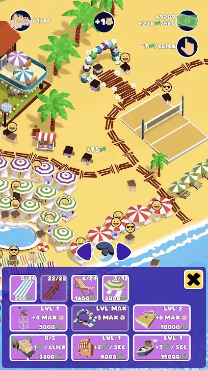 人们来您管理的海滩玩得很开心。通过改善和升级海滩来满足他们的需求,并观察现金流的增长!