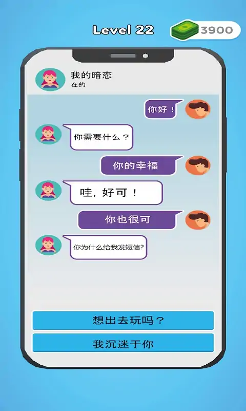 聊天去说服你的女朋友、男朋友、爸爸或老师!享受无数的聊天场景。选择下一步会发生什么,聊天时不要忘记电话护理。 玩和放松各种迷你游戏。 展示你的驾驶技能,别忘了关心你的车