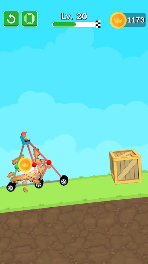 将球连接到轮子。 系好安全带。 在山上开车。 避免盒子。 享受