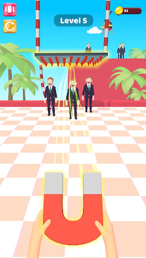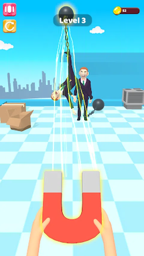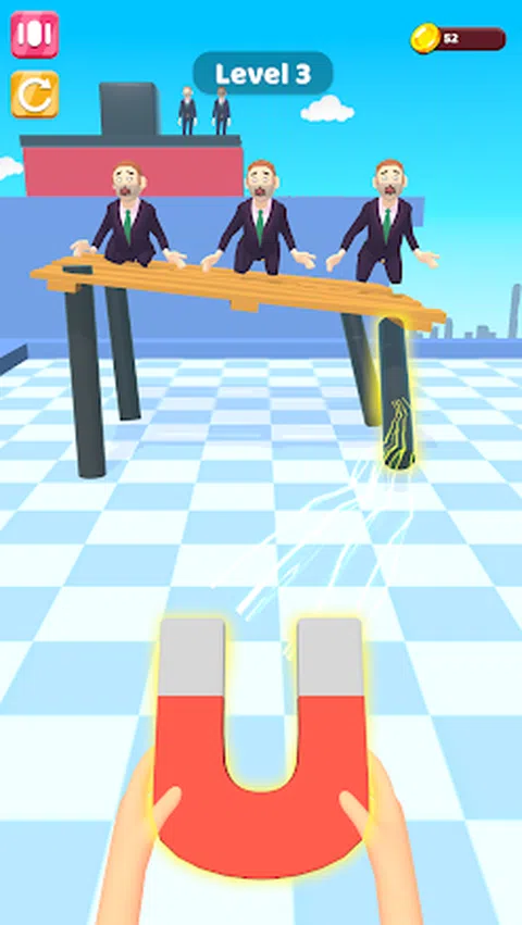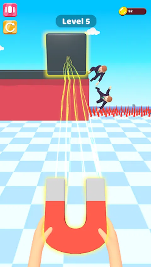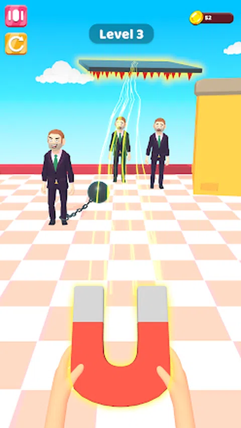 保持屏幕以发出磁力,可以控制现场的铁产品,控制这些铁制品,并用它们来杀死敌人,但你需要使用你的大脑