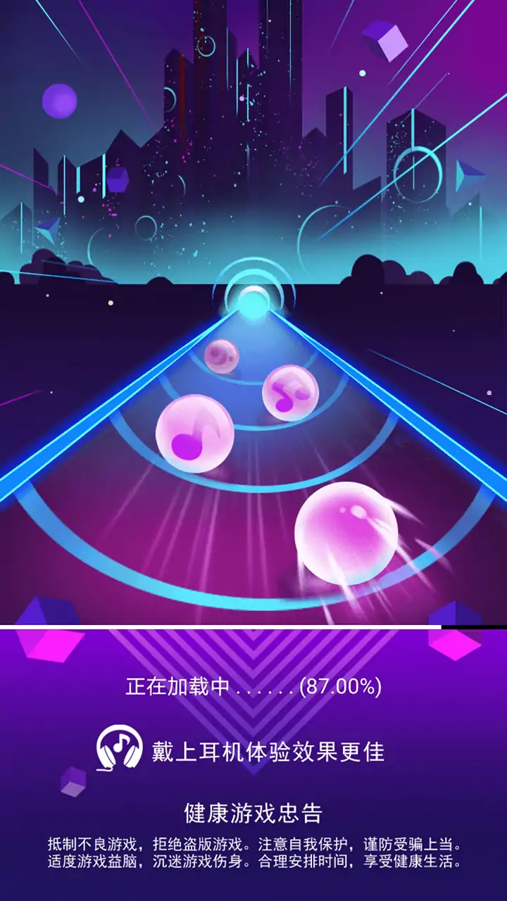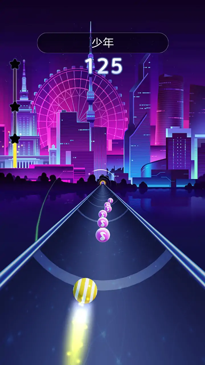 滚动音符是一款节奏打点的音乐类游戏,这款游戏的画面采用3D特效,玩家可以感受视觉冲击。玩家只要拖动小球进行滚动撞击音符获得分数,玩家在游戏中可以解锁新的音乐曲目进行挑战。