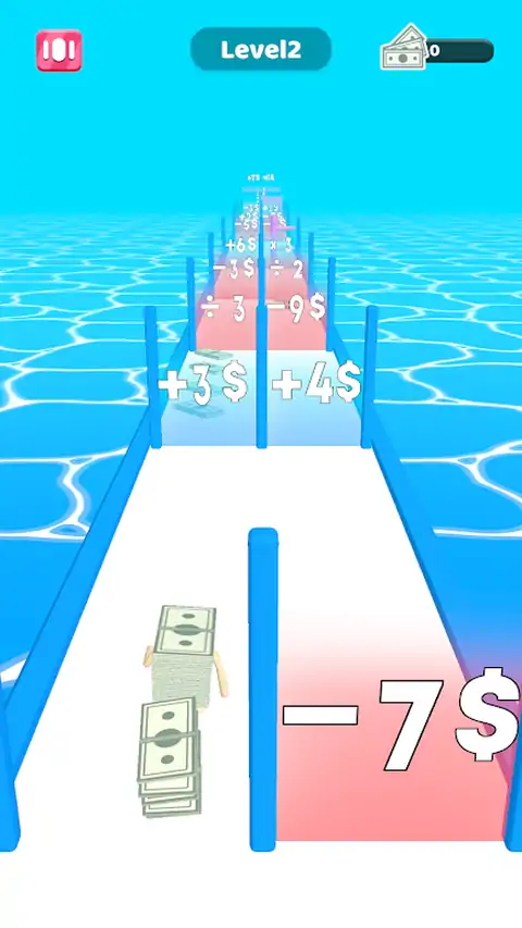 你控制一个钞票男子在路上运行,你可以在路上收集钞票或通过乘法器乘以他们,但这可能会测试你的数学能力