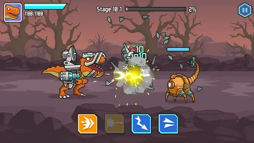 游戏的动作发生在后世界末日时代。机器人已经占领了地球,奴役了所有生物。我们勇敢的恐龙决定与敌人作战。他穿上军事装备去抗击侵略者。每次战斗后,你都可以升级你的盔甲、武器和技能。在决赛中,你会发现一个控制所有机器人的超级老板。你能做到吗?玩得开心