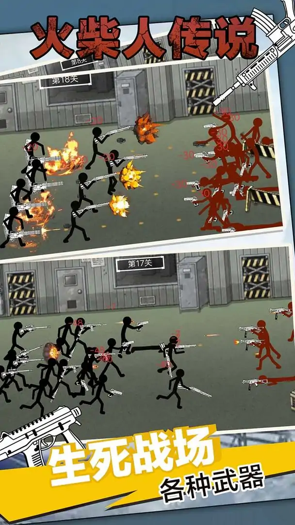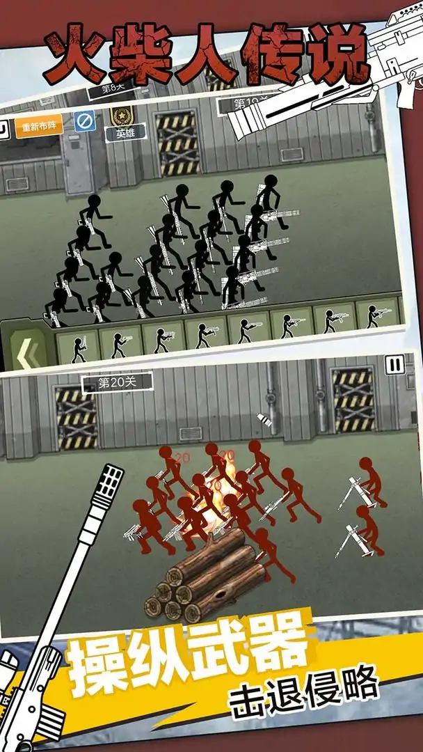 紧急!火柴人部落因恐怖势力陷入了无休止的战斗!更糟糕的是,处于后现代时期的火柴人英雄早已不是原始落后的部族,士兵们拥有超现代化的武器,不但有匕首、手枪、冲锋枪,更有霰弹枪、自动步枪、连发狙击枪、单发狙击枪、重型狙击枪、加特林、迫击炮、火箭筒、坦克、装甲车各式各样的现代化武器层出不穷,在英勇无畏、团结热血的火柴人英雄的运筹帷幄中,每一场战斗都面临着毁灭性的后果!游戏玩法:这是一款火柴人题材的射击游戏,将时下热门的火柴人枪战与部落战争题材为一体,为玩家打造了一个精彩熟悉的火柴人冒险世界,创新又好玩!游戏中玩家需要组建一支强大的军队进行作战,并且你还拥有军队中每一个火柴人的控制权,快速开打,极致爽快的战斗等你体验!
