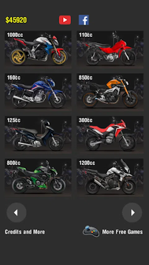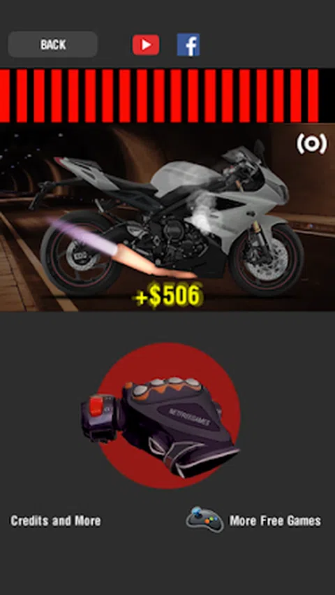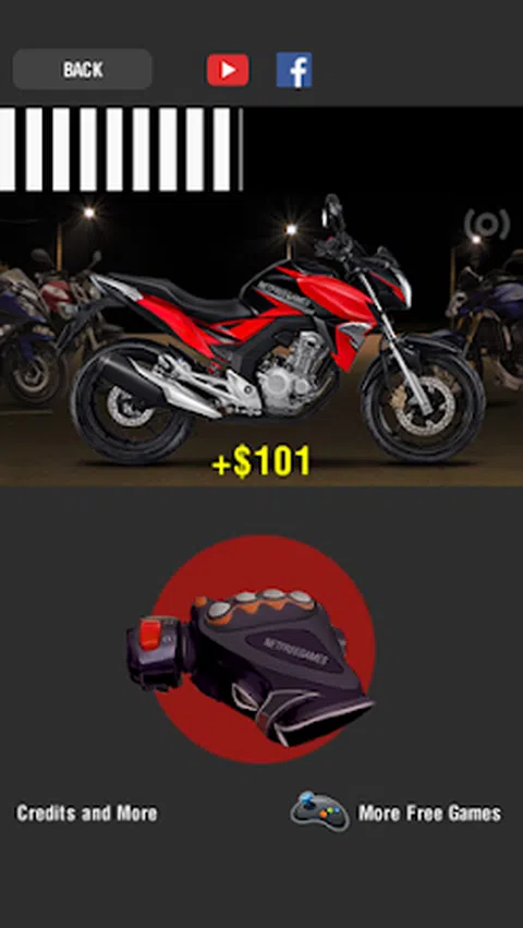 这个应用程序有很多真实的声音。有不同排量的摩托车,从150cc到1200cc。你可以加速发动机,看到排气管变热并喷出火焰。 在这个升级版中,游戏得到了改进,并从更多的钱开始解锁自行车